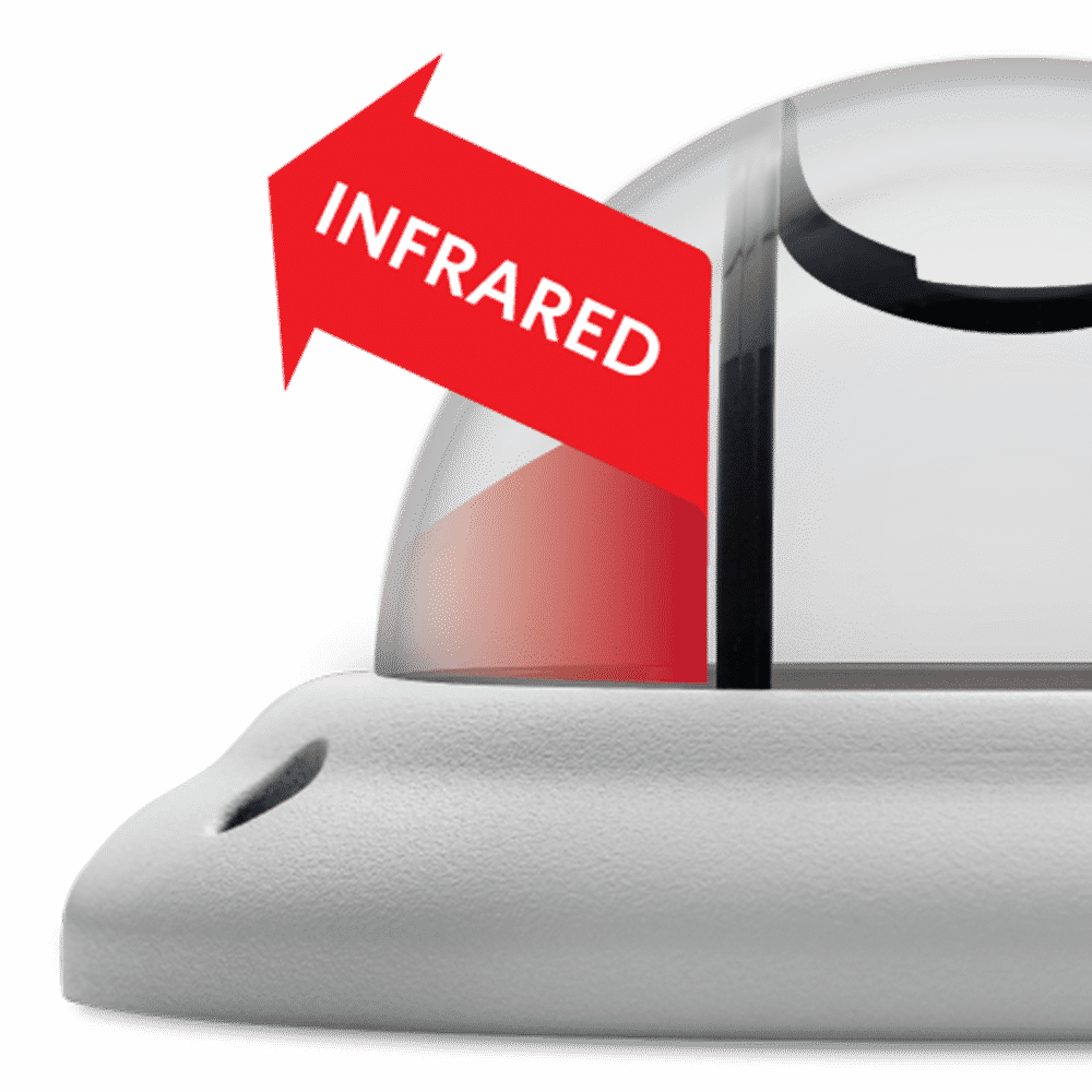 IR Shield Technology utilizes a patented molded-in polycarbonate shield that blocks any residual IR light from transmitting through the dome into the camera giving you a clear image even when rain and dust are present on the surface of the dome.